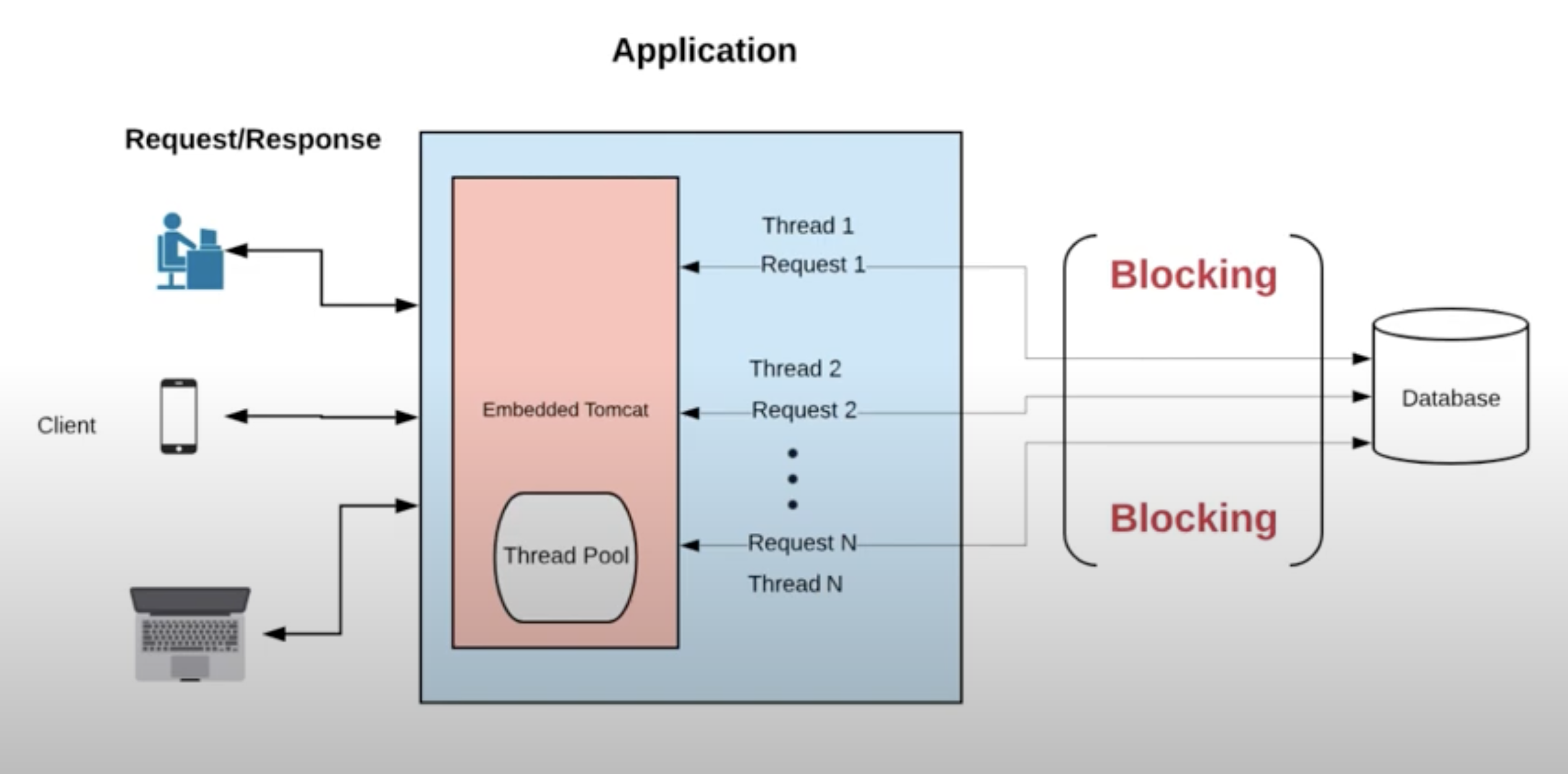 - 이러한 명령형 코딩 스타일로 인해 스레드가 완전히 처리되기 전까지 Blocking 이 일어나고 리소스가 비효율적으로 사용되고 있음